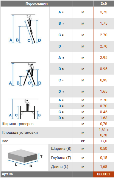 Рабочие высоты: 2,70 м; 2,95 м; 3,75 м