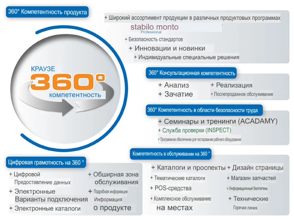 Благодаря 360-градусной компетентности KRAUSE клиенты получают максимальную безопасность, более эффективные процессы и всестороннюю поддержку. Комплексный подход не только продлевает срок службы продукции, но и оптимизирует ее использование в повседневной работе. Вот что значит качественное обслуживание!