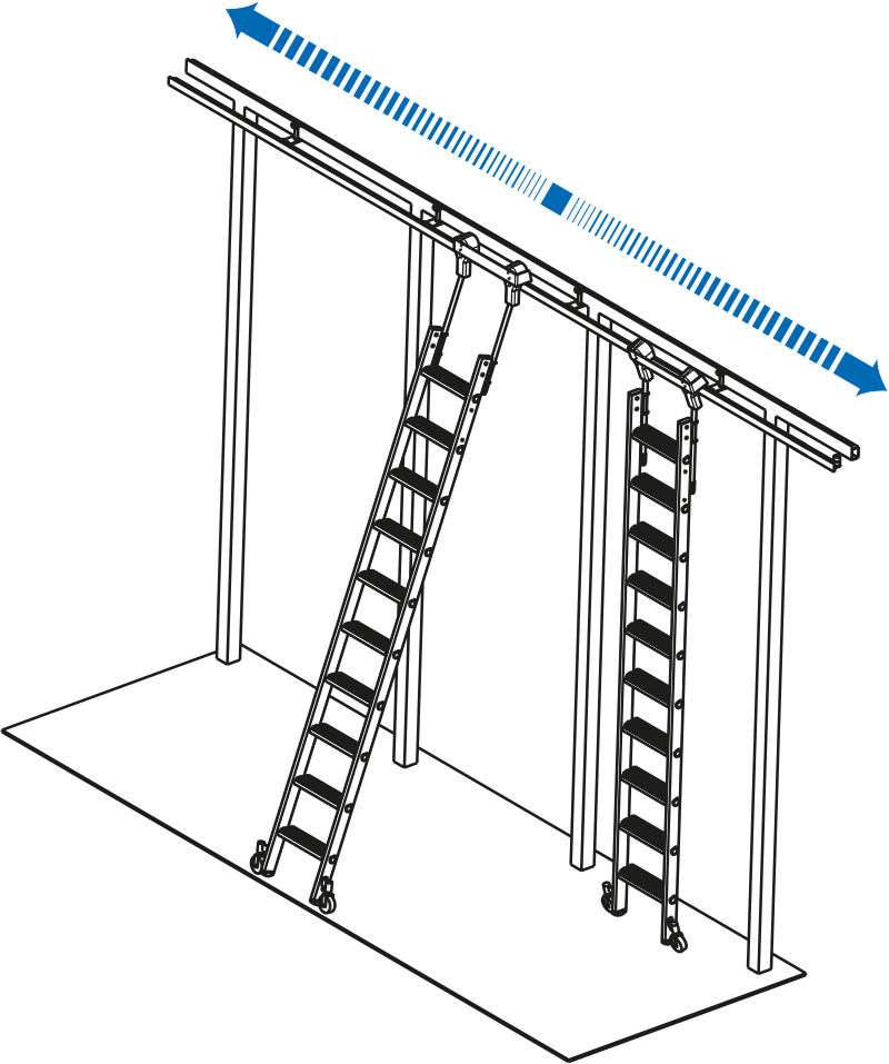 Алюминиевая стеллажная лестница со встроенным блоком роликов для Т -образной шины.