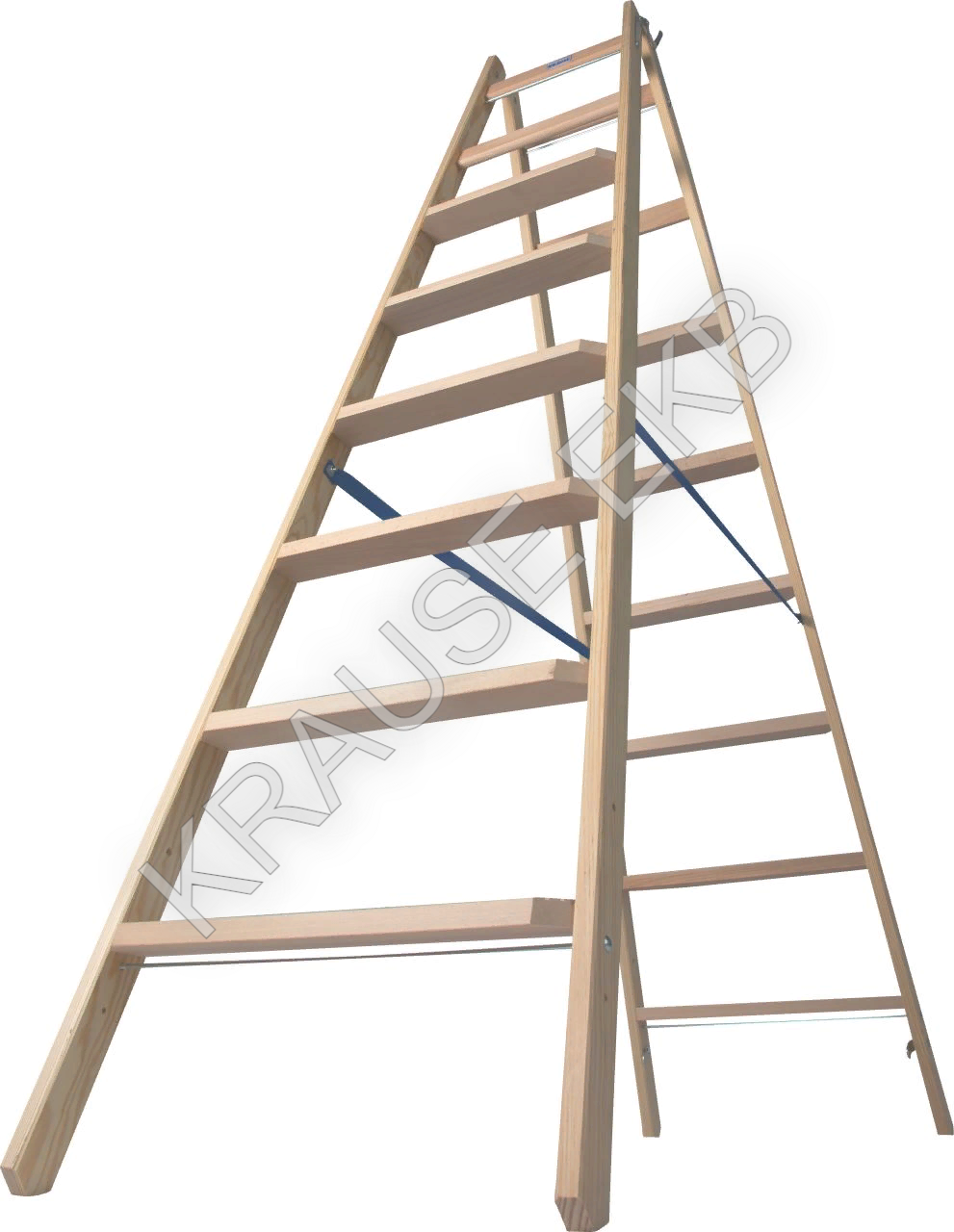 Деревянная двухсторонняя стремянка с перекладинами и ступенями KRAUSE STABILO 2х8 ступеней 818355