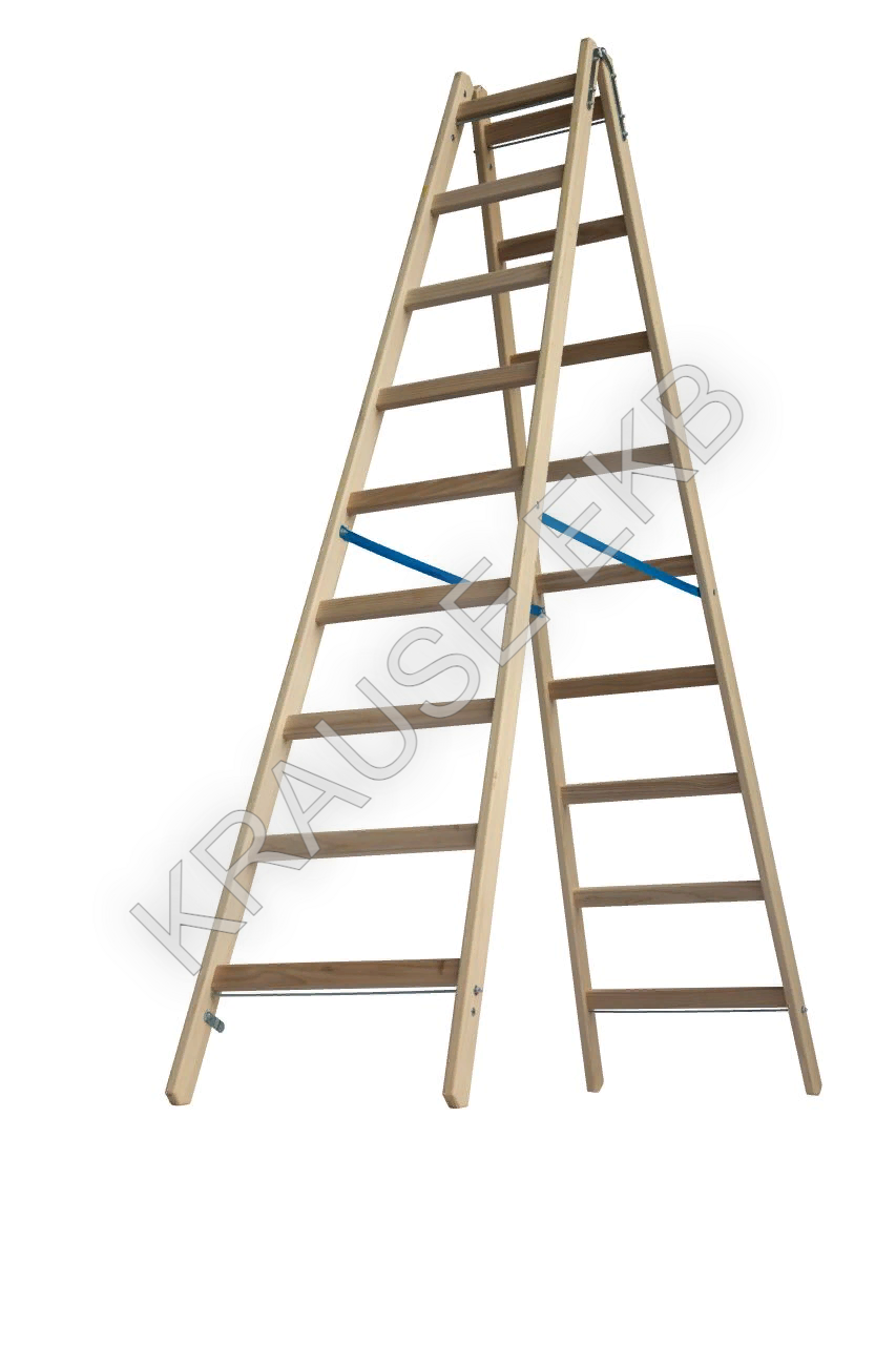 Двухсторонняя деревянная стремянка с перекладинами KRAUSE STABILO 2х9 ступеней 170293