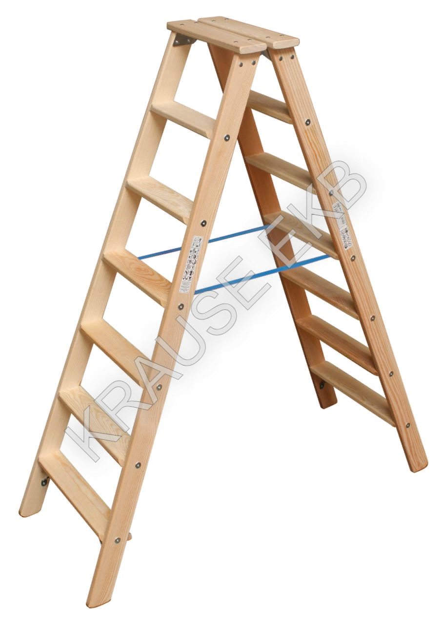 Двухсторонняя деревянная стремянка со ступенями KRAUSE STABILO 2х7 ступеней 818447