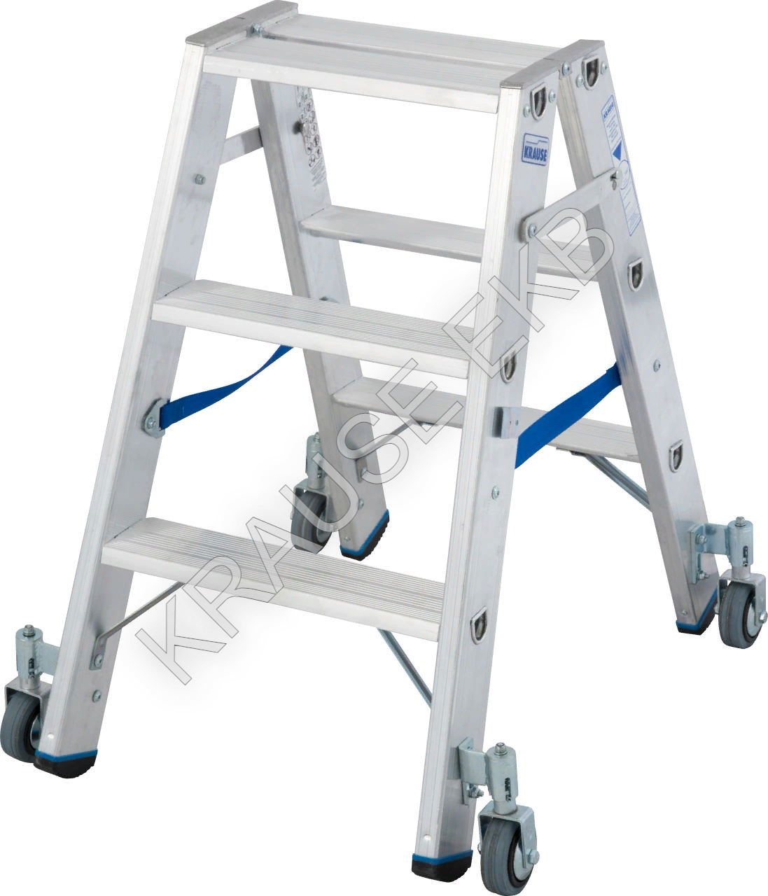 Двухсторонняя стремянка KRAUSE STABILO с роликами 2х3 ступени 124814