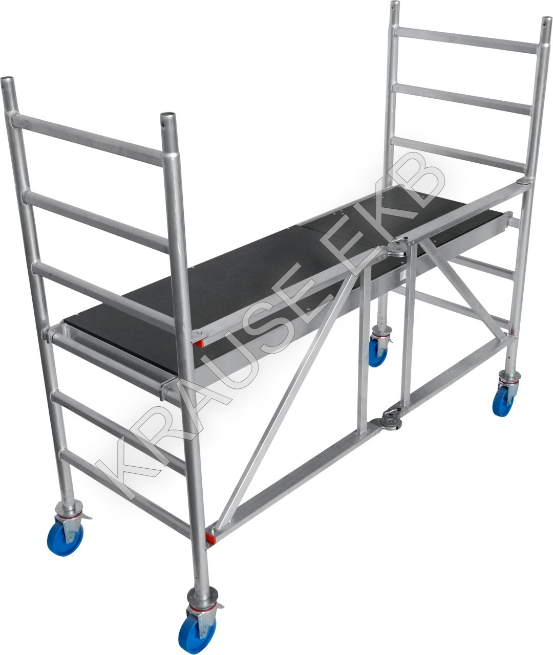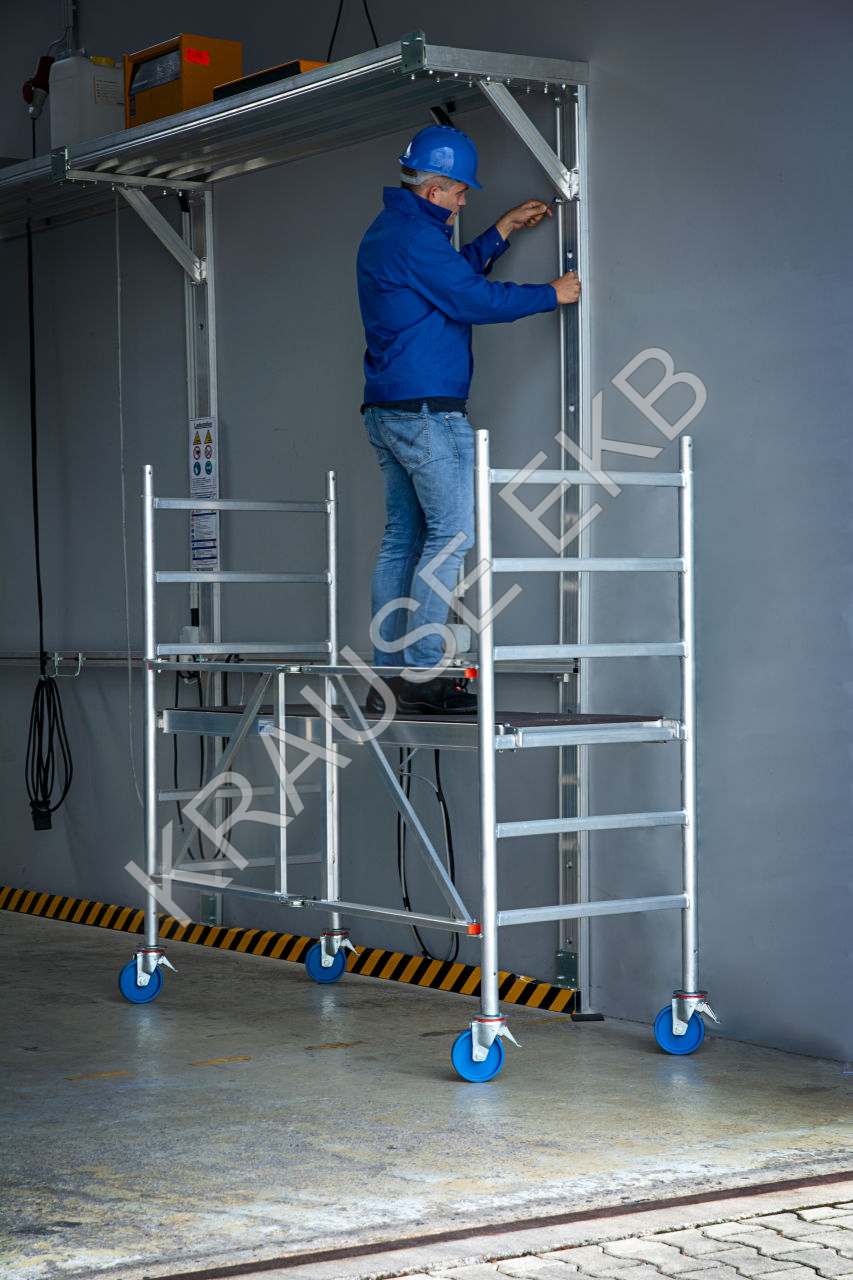 Сократите время при возведении сооружений, фасадном ремонте и прочих строительных работах – купите алюминиевые вышки-туры и подмости KRAUSE. С помощью мобильных вышек-тур и подмостей KRAUSE Вы сможете выполнять работы на большой высоте и легко передвигать их между участками работ. Роликовая система с регулировкой высоты и фиксаторами, делает вышки устойчивыми на любой поверхности и мобильными. Для перемещения вышки достаточно отпустить тормоз на каждом колесе и Вы сможете их передвинуть. Передвижные вышки-тур и подмости KRAUSE охватывают практически все области применения.